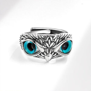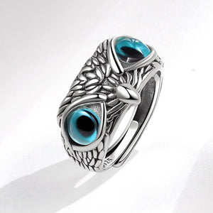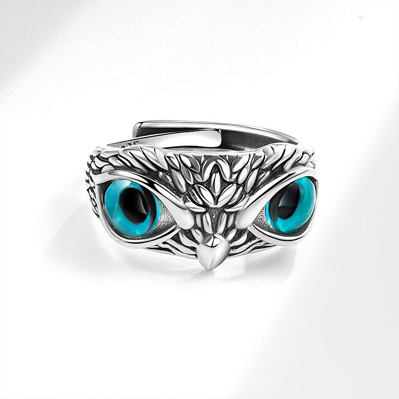 Vintage Sterling Silver Owl Ring Blue Eye Adjustable Punk Jewelry